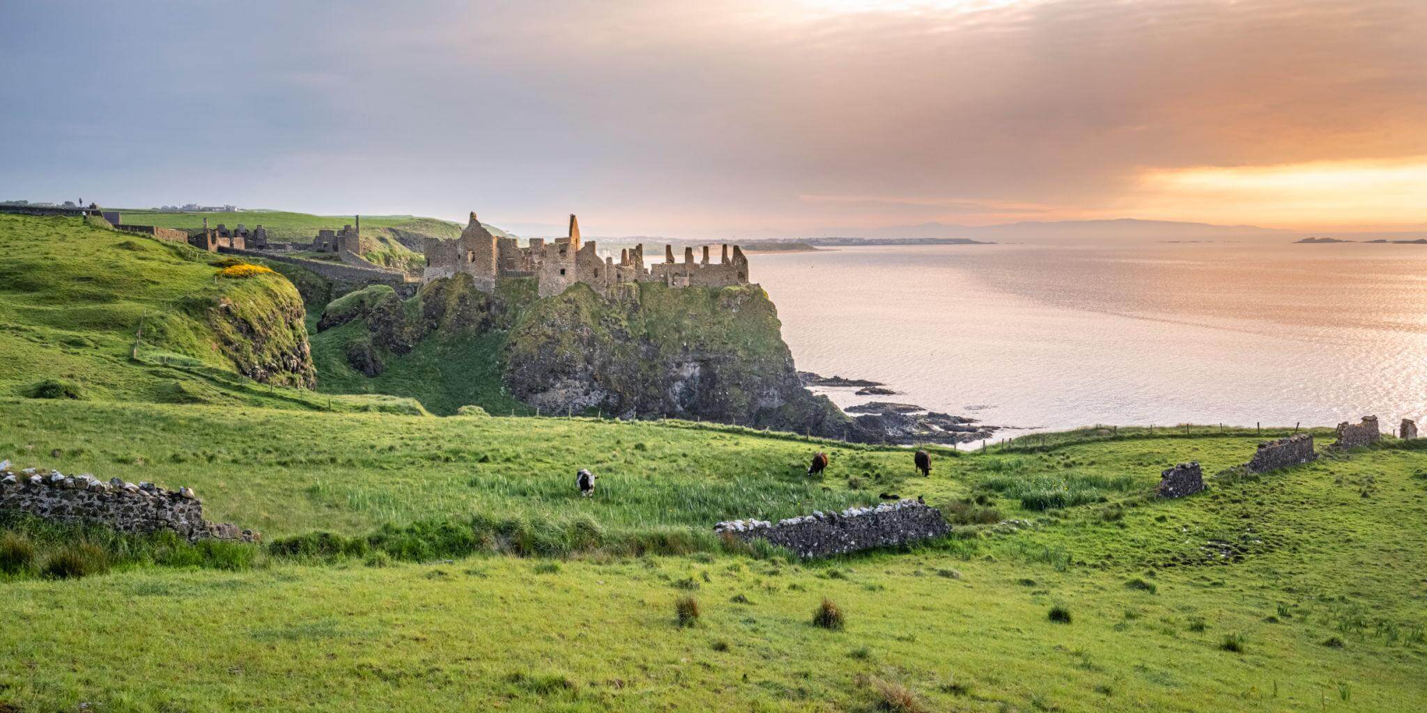 Next, enjoy a scenic stop at Dunluce Castle, dramatically perched on the edge of a cliff overlooking the Atlantic Ocean. This medieval ruin provides spectacular views and a glimpse into Ireland’s ancient past.